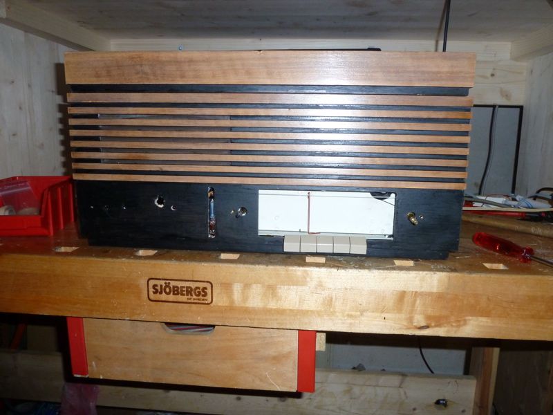 Die Vorderseite noch ohne die Skalenscheibe, hier fällt das schmale Chassis und damit die kurze Skala auf:
