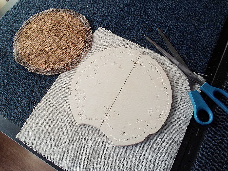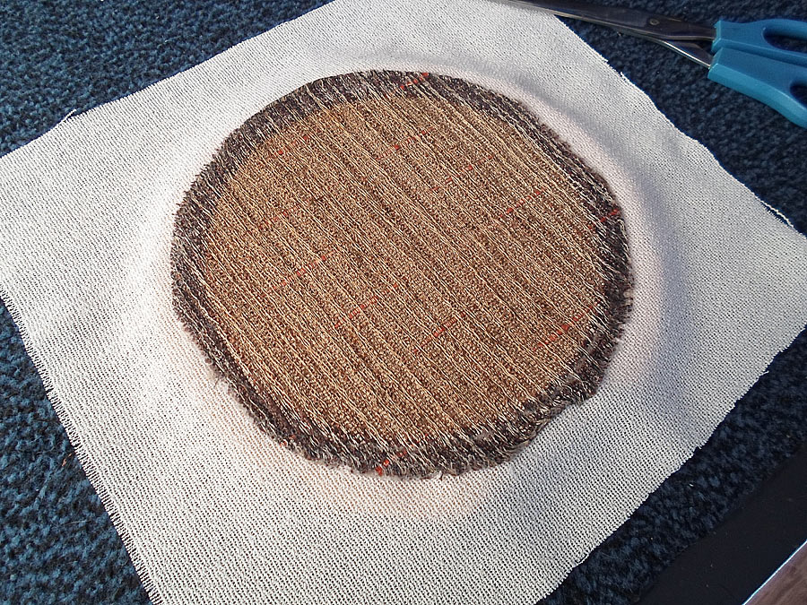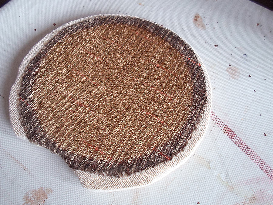 das ist ein Leinenstoff und er ist mit dem gereinigten am Rand verklebt, dann auf eine Schablone angezogen und reingeklebt.