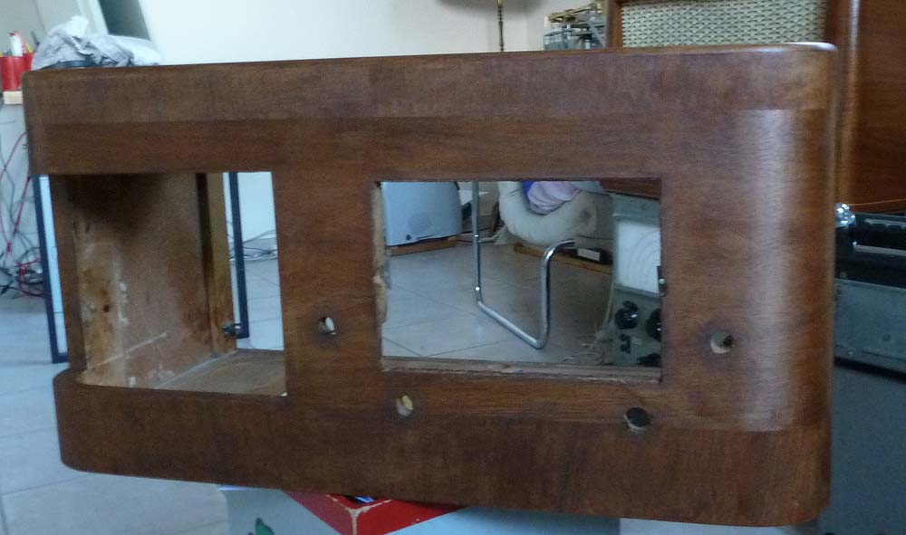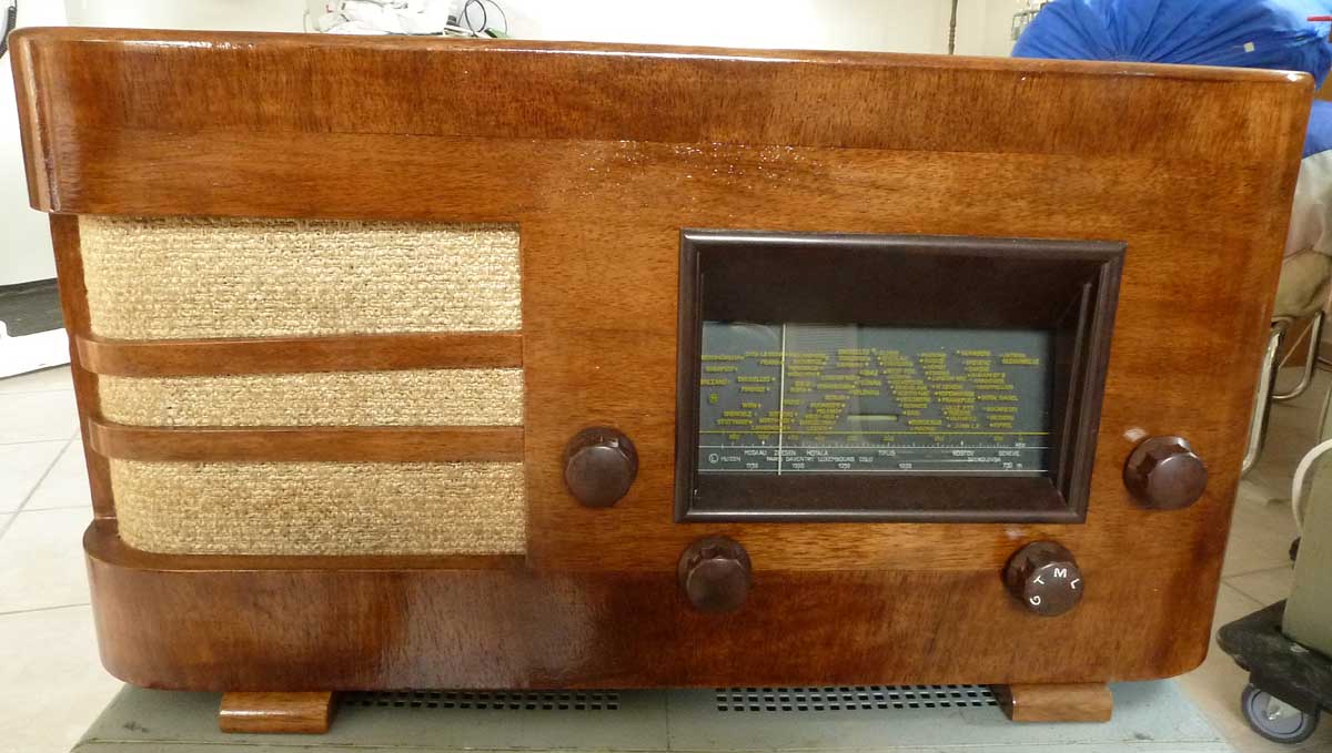 Dieses Gehäuse ist sehr stabil gebaut, teilweise Massivholz und dort, wo es furniert ist, ist das Furnier sehr dick, somit besteht keine Gefahr von Verwellen oder Ablösen und anderen Widerwärtigkeiten. Aber es gibt auch andere Gehäuse mit superdünnem Furnier, da sieht es natürlich anders aus. In diese Kategorie gehört (leider) der Philips 736a, der bei mir noch in der Pipeline ist. Das Gehäuse ist ziemlich mies dran, die Elektronik ist vollständig, aber wie gut der noch ist, weiss ich nicht. Aber bei einer Gratis-Beigabe kann man nicht Nein sagen, und es ist der erste industrielle Geradeausempfänger, den ich in die Finger bekommen habe