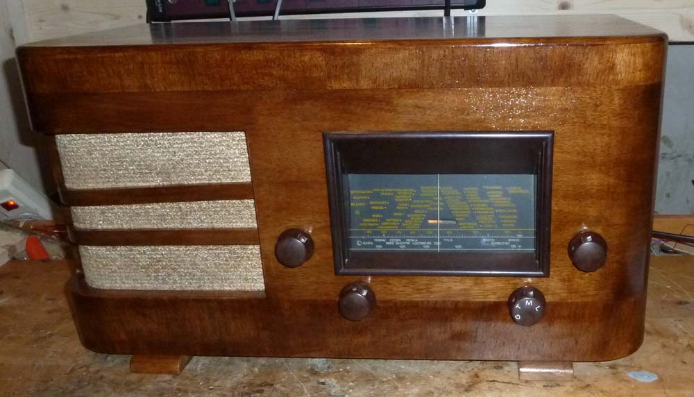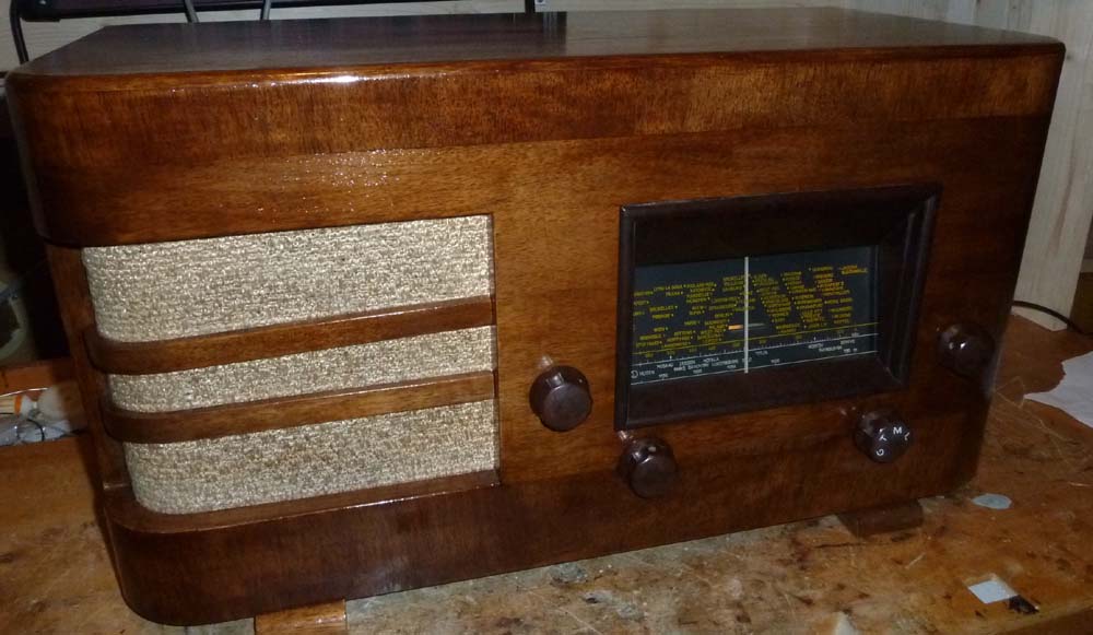 es ist geschafft! Das Gehäuse ist wieder zusammengebaut und der Radio drin und funktioniert. Jetzt hält er wieder 80 Jahre Die Chassis-Neigung muss ich aber noch korrekt einstellen, das geht hier über von unten zugängliche Schrauben recht gut.