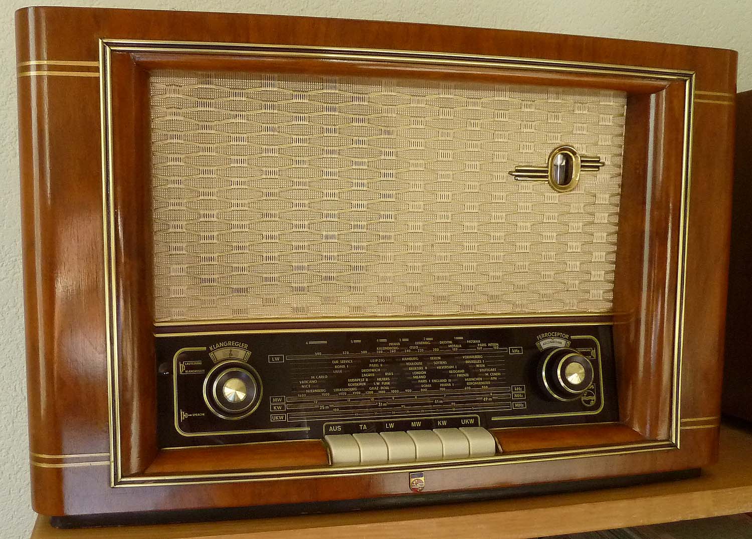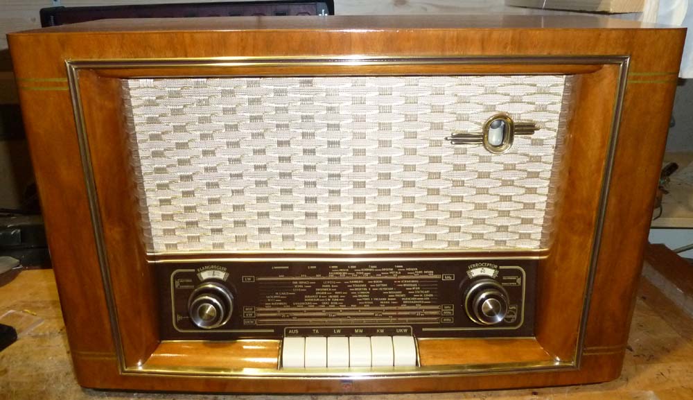 nochmals zur EABC80: der asymmetrische Ratiodetektor ist kein Nachteil, solange man keine automatische Scharfabstimmung (AFC) machen will, was damals ja eher unüblich war. Den grossen Nachteil sehe ich darin, dass die Kathode der Triode nicht zugänglich ist und daher Gegenkopplungen 'kreativ' sein müssen, weil der normale Weg auf die Kathode nicht geht, auch die Arbeitspunkteinstellung über den Gitter-Anlaufstrom ist alles andere als optimal. Wenn ich mir die Bauteil-Konzentration um die EABC80 herum ansehe, wäre es auch konstruktiv ein Vorteil gewesen, wenn der AM-Teil mit Distanz zur EABC80 gewesen wäre. Wie auch immer, ein paar Jahre später wurde die Röhre dann durch Germaniumdioden ersetzt und somit überflüssig, und die AM-Diode wanderte (wieder) in die ZF-Röhre.