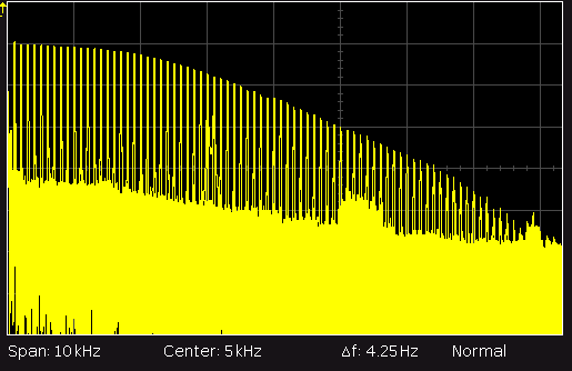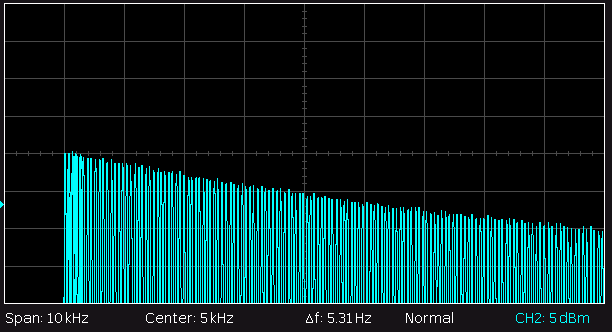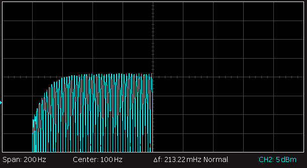 Der NF-Frequenzgang bei Radioempfang (10dB/Div und 1kHz/Div):