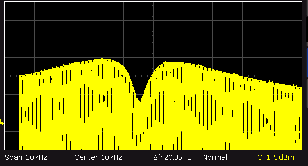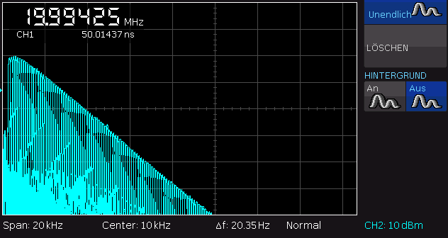 Hier noch der NF-Frequenzgang bei Radioempfang (10dB/Div und 2kHz/Div): ZF schmal: ZF breit: Man sieht deutlich den viel steileren Abfall bei schmalem Filter.