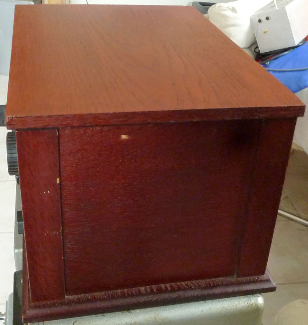Die paar hellen, beschädigten Stellen werden auch noch eingefärbt, dann ist das Gehäuse fertig restauriert.