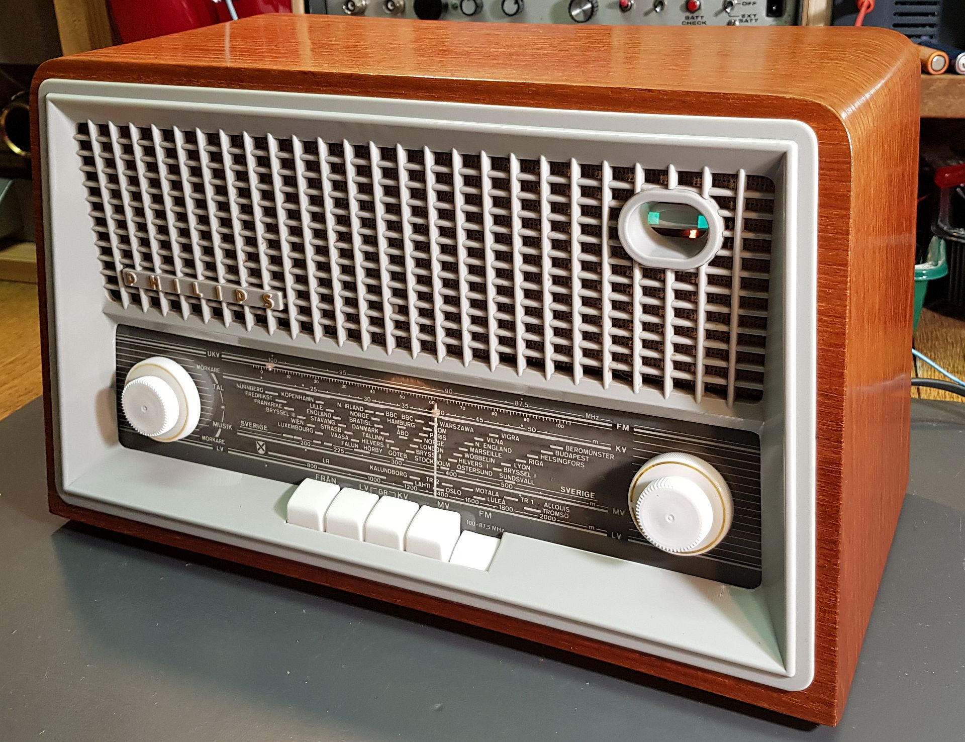 Bei dem alten Röhrenradio ist der Bluetoothstick direkt am Grammophoneingang angeschlossen. Interessanterweise war ein Anti-RIAA-Filter nicht notwendig.