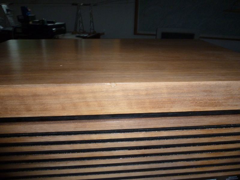 ich habe mich mal noch um die üble Schramme im Deckel gekümmert, die sah ja nicht gerade toll aus. Im Baumarkt bin ich dann fündig geworden in Form von Holz-Spachtel Nussbaum. Dies ist eine Paste wie Polyesterspachtel, der z.B. bei der Reparatur von Autokarosserien genutzt wird. Die Farbe ist erstaunlich passend, wie man auf dem Bild sieht. Die Anwendung ist ebenfalls simpel: passende Menge in die Delle stopfen und danach mit dem Spatel schön glatt streichen, bei tiefen Löchern in mehreren Schritten. Wenn es dann trocken ist, kommt der Finish mit Schleifpapier und einer Lage Lack.