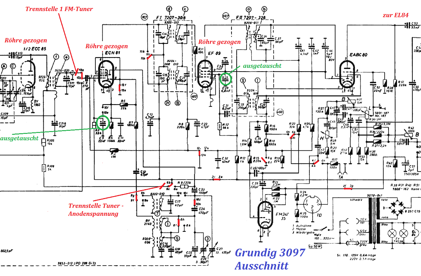 ja, schau in den Anhang. Hier habe ich die relevante Schalterstellung für UKW eingezeichnet und die gezogenen Röhren vermerkt.