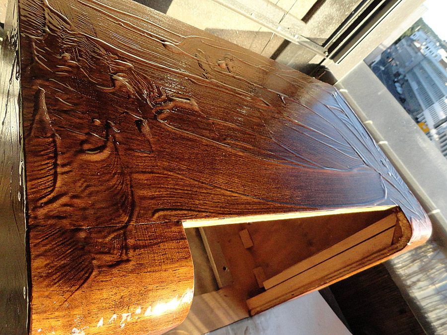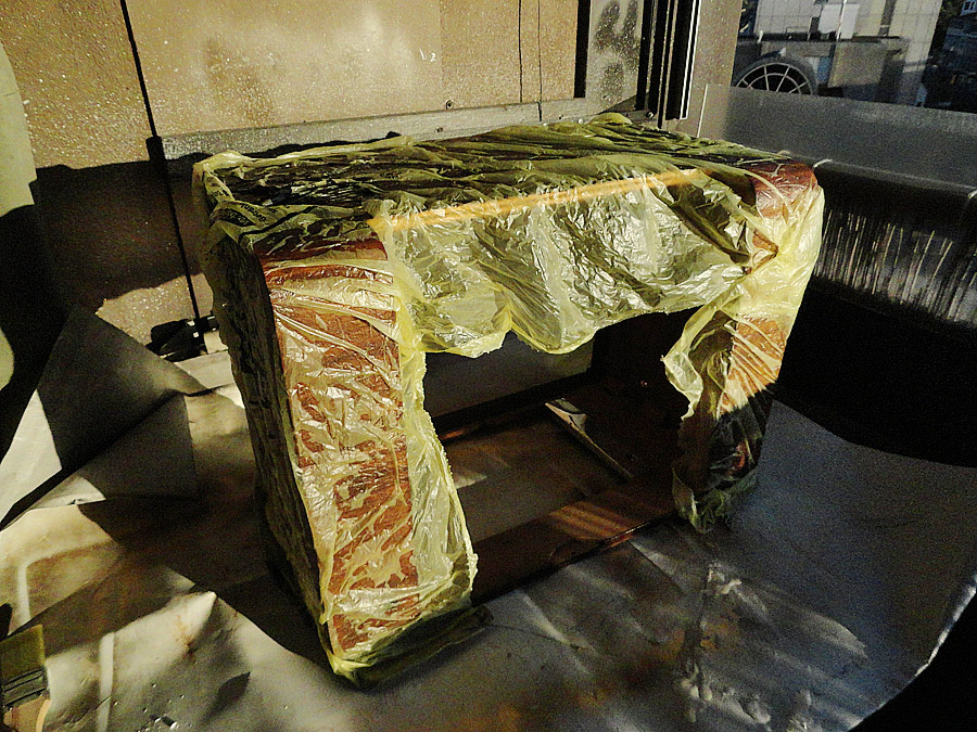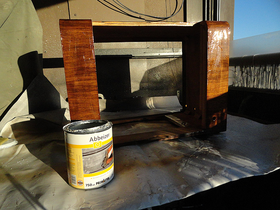 Du sollst dem Abbeizer so auftragen, das er kommt nicht auf Unterseite des Chassis und auch nicht auf die Bauteile, besonders auf die Spulen. Das ist nicht schwer, weil Abbeizer ist wie eine Gelee, nicht flüssig, nur sparsam auftragen. Nach dem abbeizen brauchst Du nichts abwaschen, nur mit Kittmesser die abgegangenen Lack abnehmen und mit Ethanol gut alles abwischen. Mann soll das alles natürlich mit Gefühl machen und vorsichtig.