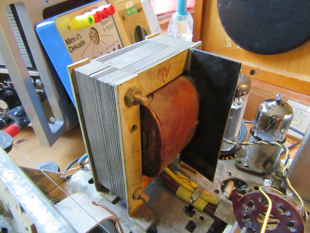 Trafo Heiss! Oder besser zu warm. Eine wenig beachtete Sache könnte auch ein nachlassen der Qualität der Kernbleche wegen Alterung sein. Klar das damals auch auf die Kosten geachtet werden musste, 50 + Jahre als Lebenserwartung der Radios wurden nicht einkalkuliert. Auch wenn es seltsam scheint, ein neuer 230 V Prim. Netztrafo und ein neuer Si Gl. mit neuer Siebkette machen das Radio für die nächsten 50 Jahre fit. Alle Papierkondensatoren raus und durch neue Folien C ersetzen. Die EABC 80 wird auch langsam knapp, die PABC 80 gibt es NOS für wenig Geld und ein kleiner 9 V Trafo helfen. Das Radio wird fast genau so klingen wie beim verlassen der Produktionslinie.