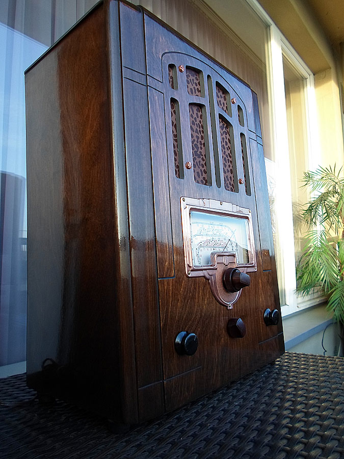 ja das ist immer eine gute Frage - was heißt Restaurieren. Und ich denke das sind zwei Wege, ein mal das so machen, das der Gerät wie gestern von Geschäft siet aus und zweite - das Gerät soll alt aussehen, aber in einem sehr gutem Zustand. Das muss man jedes mal entscheiden. Wenn das Radio hat Chassis mit Rost und abgeblättertem Lack, dann muss das auch neu lackiert, und vorher natürlich, komplett auseinander montiert werden. Wenn das Gehäuse hat stark beschädigter Lack, dann lackieren u s.w. Der Fahl war grade bei mir mit dem 6N1. Ich habe neues Lack auf Gehäuse drauf gemacht, aber so das man siet, das dass ein altes Gerät ist. Ich habe das extra mit Schellack gemacht, ungefähr 40 Schichten. Ich konnte natürlich, mit Pistole, eine oder zwei Schichten von einem modernem Lack drauf machen und fertig. Aber dann war es nichts - Nachbau Radio. Genau so, z.B. waren alle Kondensatoren nachgebaut, die sind optisch wie originale. Ich musste das auch machen weil die waren zu 90% alle kaputt. Bei dem Radio siet man noch genüg Gebrauchtsspuren und Schrammen. Aber es gab auch Fehle, wo ich habe das Gerät als ganz neu hingebracht. Ein Beispiel: