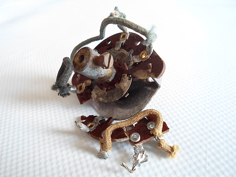 ich nehme an, du hast das zerbrochene Pertinax mit 2-Komponenten-Epoxid-Kleber geklebt und zusätzlich noch kleine Pertinax-Stückchen zur Verstärkung daraufgeklebt. Hast du die Stahlschrauben wieder mit Phosphorsäure entrostet? Ich hätte nie gedacht, dass so ein Schrotthaufen wieder wie neu aussehen kann.