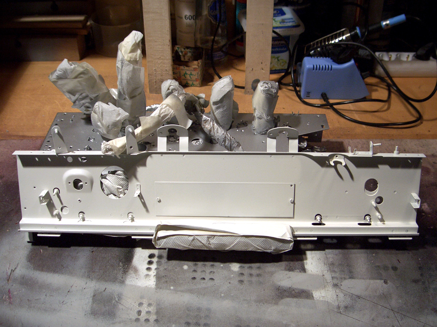 Und dann habe ich angefangen. Das Gehäuse habe ich erst nach die Seite geschoben. Als erste kam in Spiel der Abstimmungsmotor.