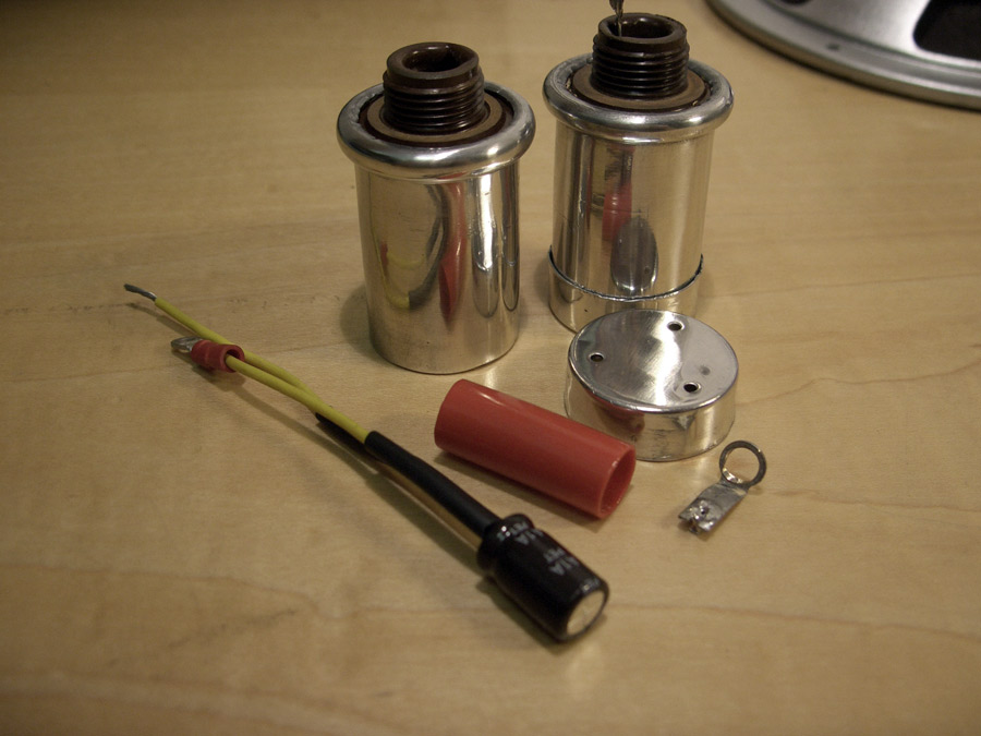 Hallo Joe, mit alten Kondensatoren. Je nach dem. Wen das ganz altes Radio ist dann verwende ich die Gehäuse für neu. Bei diesem Projekt habe ich einfach fast alle Kondensatoren erneut.