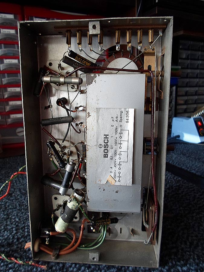 hier ist wieder eine Thema um Restauration einen VE-301. Ich weis, das war schon hundert mal alles beschrieben, aber ... Ungefähr von ein Jahr habe ich bei Gelegenheit, paar Chassis von VE-301 gekauft. Die waren alle nicht komplett. Von Anfang wollte ich die drei ein komplettes Empfänger zusammenbauen ( da fehlen noch Gehäuse, Lautsprecher, Röhren, Drehknopfe und Rückwände). Dan habe ich das anders überlegt und möchte die alle drei als richtige Radios aufbauen. Angefangen habe ich mit Neufeldt & Kuhnke Kiel VE-301W. Die Arbeit wird wahrscheinlich nicht so schell sein, weil da fehlt noch vieles.