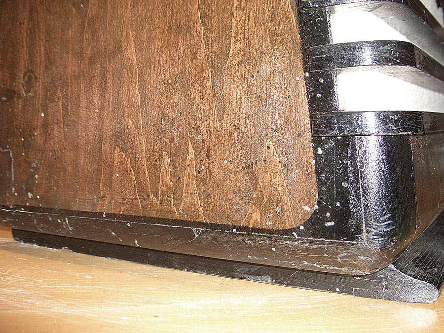 ich bin mal wieder in Serbien und habe hier ein interessantes Radio geschenkt bekommen. Die Elektronik selbst sieht noch relativ gut aus, obwohl ich befürchtet hatte, dass die Halterung der Gleichrichterröhre eine 'Bastelei' ist. Der Nachbar hat fast genau das gleiche Radio und hier sieht es aber genauso aus (Das Bild von der Vorderansicht ist vom Radio des Nachbarn). Das eigentliche Problem aber ist der Wurmbefall des Gehäuses. Meine Frage hierzu ist, wie stopft man die Löcher, so dass man sie kaum sehen kann? Ich habe auch schon daran gedacht, das Gehäuse neu zu furnieren. Vielleicht hat von Euch ja schon mal jemand das gleiche Problem gehabt und kann mir einen Tip geben.