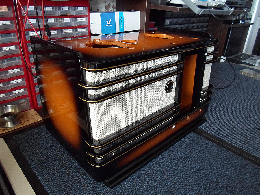Das Radio von Friederich zählt nicht. Die sind nachher immer besser wie neu. Sieht echt toll aus das Gerät. Wozu sind denn die ausschnitte im Gerät. Kommt da noch Plattenspieler und Tonband rein?