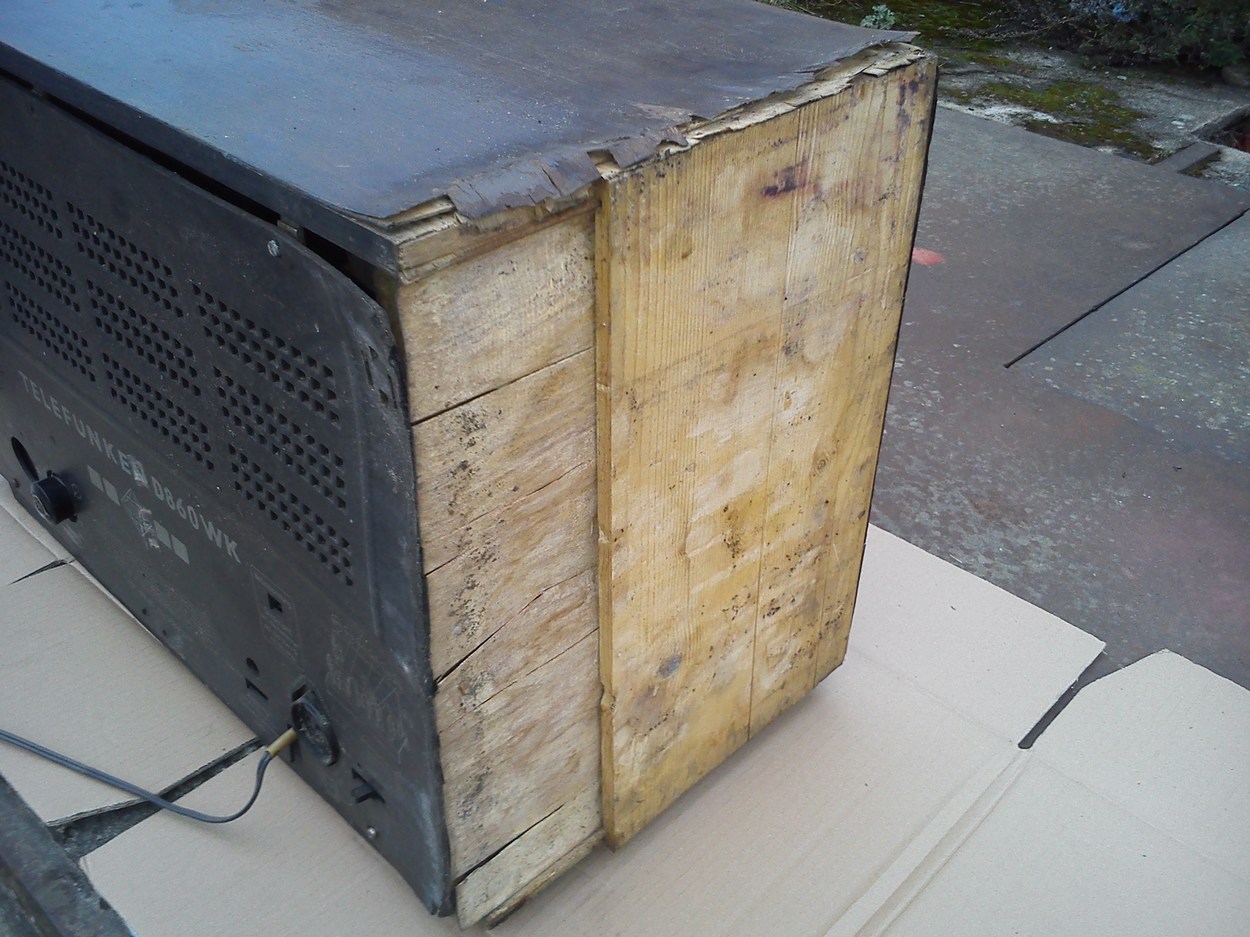 Nun aber zum Telefunken: Aufgefunden habe ich es in Berlin vor einer Garage, wo es schon einige Zeit stand, in etwa so :