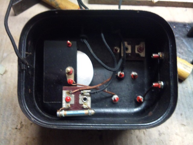 Es ist ein frühes modulares System zum Zusammenstöpseln. Schwingkreismodul, Röhrenmodul, Kopfhörer, Erde, Antenne und Batterien ran und fertig ist der Empfänger. Merkwürdig, dass der Kondensator für die Rückkopplung nicht im Gehäuse zu finden ist. Vorn rechts in der dunklen Ecke, da muss der eingeglötet gewesen sein. Der fehlt...schau mal nach ob dort noch Spuren vorhanden sind. Müsste ähnlich wie am Drehko ausgesehen haben.