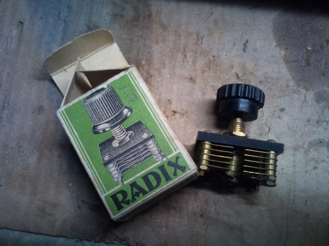 Aus den von Dir fotografierten Einzelteilen der Firma Radix läßt sich kein Empfänger aufbauen. Diese Teile gehörten zu einem Empfängerbausatz, der etwa zwischen 1927 und 1930 angeboten wurde. Es läßt sich an Hand der Bauelemente aber keine konkrete Schaltung ableiten. Das Bild 8516 zeigt einen Trimmkondensator (20 cm), der zur Neutralisation einer Verstärkerstufe diente. Das letzte Bild fällt völlig aus dem Rahmen. Es zeigt eine Steckdose für UKW zum Anschluß einer symmetrischen UKW- Antenne und einen Anschluß für eine Antenne K, M und L mittels eines Bananensteckers, etwa 1950.