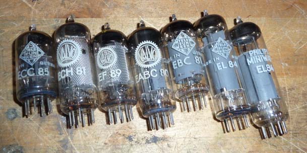 Die entstaubten Röhren, die EL84 von Philips ist irgendwie ein Fremdkörper, vermutlich wurde die mal ersetzt. Die EM84 fehlt hier noch.