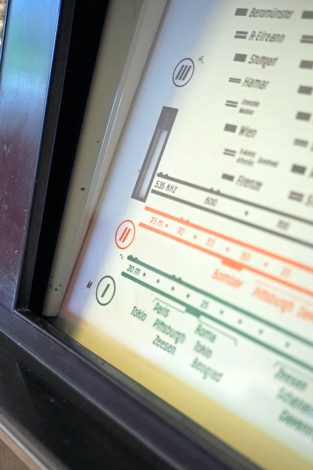 Schondorfer:Martin, guten Abend, danke und ich hoffe ich störe nicht beim Tatort :-) Seitenteilchen...ja, die sind aus Blech, fest an der Skala und mit der gleichen Farbe gespritzt - die meinst Du - oder? Die sorgen für den Abstand von der Blechskala zum Glas...unten näher als oben, also Glas steht steiler als Skala, die beiden sind nicht parallel. Soweit, so gut. Nun geht es um den Abstand vom Glas zum Gehäuse(rahmen). Im Holzgehäuse ist ein großer Rahmen (schwarzes Bakelit??) für Lautsprecher und Anzeige. Der Lautsprecherstoff/Schallwand liegt mit allen 4 Seiten bündig am Rahmen - kein "Luftspalt", klaro. Bei mir, das Glas: es steht steiler als die Blechskala (eben durch den Verlauf der Seitenteile an der Skala). Aber der Rahmen steht noch steiler. d. h. das Glas liegt unten am Bakelit an...und oben steht steht der Rahmen fast 1 cm vom Glas ab. D. h. es ist oben Luft zwischen Gehäuse(rahmen) und Glas. Das soll doch nicht sein? Soll nicht das Glas ringsum am Bakelitrahmen anliegen? Wahrscheinlich hab ich zu zeitig gepostet, alles ist zerlegt, sorry. Morgen bau ich alles zusammen und bringe Fotos.