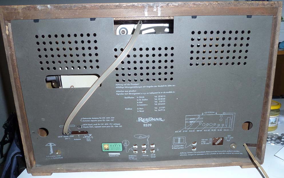 Der Empfang mit der Ferritantenne ist hervorragend, insbesondere wenn man bedenkt, dass der Test im Luftschutzkeller (Bastelraum) stattfand. Durch die Abschirmung der Ferritantenne gibt es sehr wenig Störungen, und durch Drehen können sie minimiert werden. Auf UKW macht sich die zusätzliche ZF-Verstärkung positiv bemerkbar, auch schwache Sender kommen mit voller Lautstärke. Der Ton ist ebenfalls sehr gut. Auf AM hat es irgendwo noch ein Kontaktproblem, ich vermute die Bandbreitenumschaltung, aber das ist zu finden, ansonsten läuft alles einwandfrei. Die beiden Skalenlampen sind durchgebrannt und werden noch ersetzt. Die EM84 ist recht dunkel und hat wohl schon viele Betriebsstunden auf dem Buckel. Mal sehen, ob ich noch Ersatz in der Bastelkiste habe, sonst kann ich mal bei Gelegenheit eine beschaffen, die sind ja noch nicht selten.