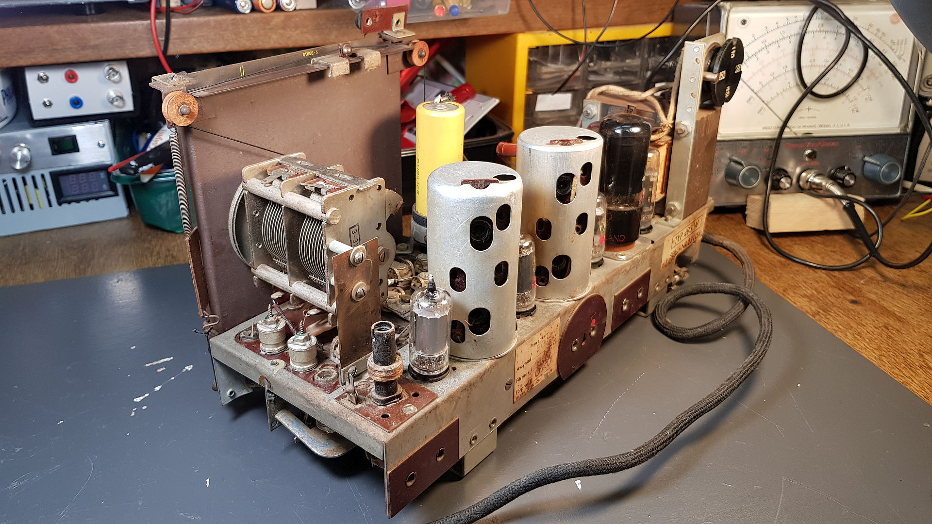 Als Nächstes werde ich die Papierkondensatoren an kritischen Stellen austauschen, insbesondere im Netzteil und den Kondensator am Steuergitter der NF-Endröhre – für mich eine obligatorische Maßnahme. Danach werde ich die Elkos durchmessen und gegebenenfalls vorsorglich ersetzen oder formieren.