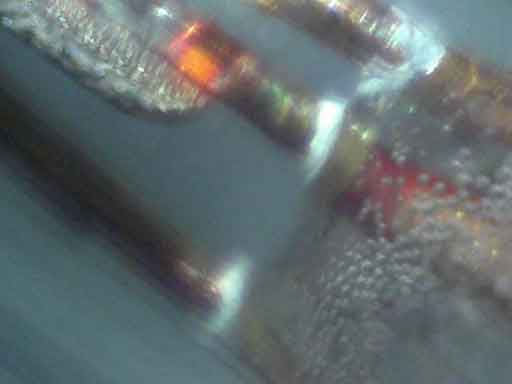 In photo 6b, you can see a white dot at the collector plate. Could this be some kind of chemical like ' getter' to keep it vacuum?
