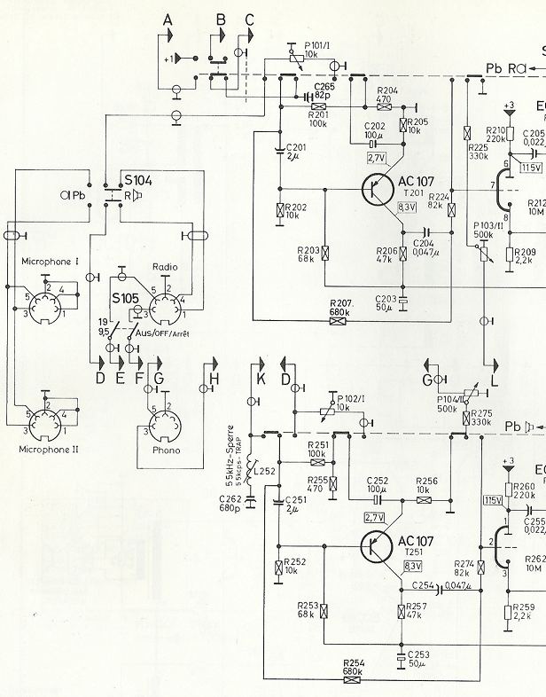 Stimmt genau. Er liegt im Eingang für Micro, Radio. Das Gerät hat keinen Entzerrervorverstärker für Magnetsystem. Sind TUP Typen als Ersatz für GE Transistoren gedacht?