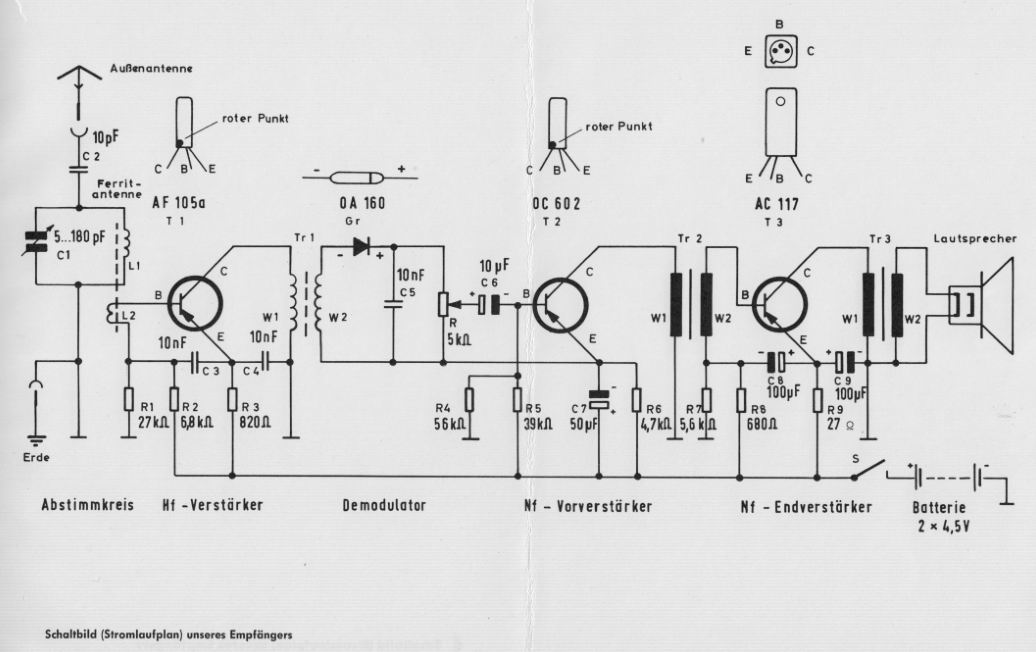 Aus heutiger Sicht interessant, dass man hier tatsächlich den HF-Transistor "nur" eben als HF-Stufe nutzte und nicht, wie in den USA üblich, eine Reflex-schaltung daraus machte.