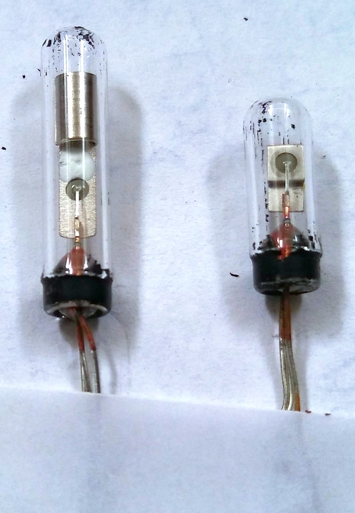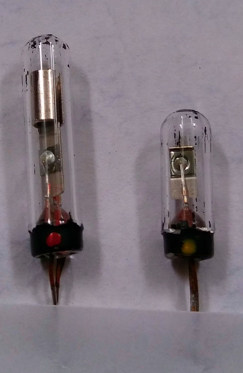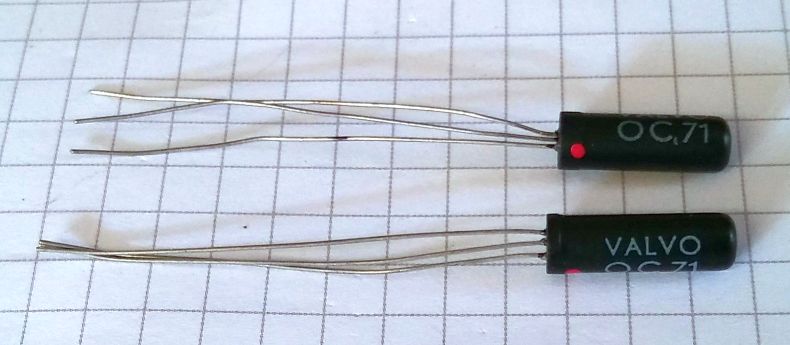 Diese schwarz beschichteten Germaniumtransistoren habe eine lustige Eigenschaft... wenn die Beschichtung im Laufe der Zeit abhanden gekommen ist dann entsteht ein Fototransistor.