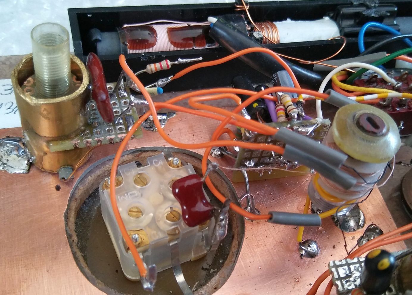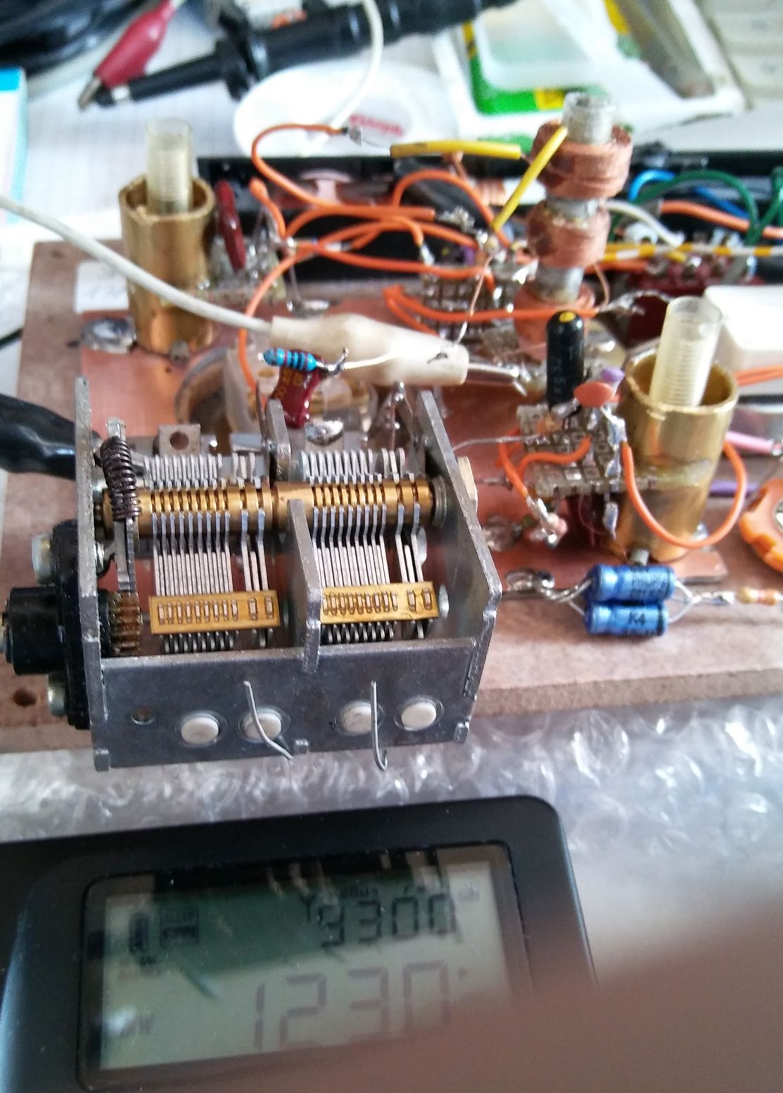 Enttäuschenderweise reduziert auch Messing die Induktivität ebenfalls um ca. 50%. Es musste also dünnere Litze her, und hier half der Zufall einer Sammlungsauflösung weiter. Es entstand so die letzte ZF-Stufe und ein Schwingkreis mit einem anderen L/C Verhältnis mit C=330pF und L=1054µH für den Kreis der Mischerauskopplung.