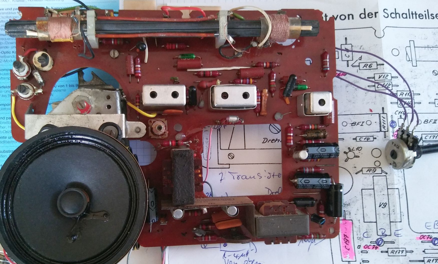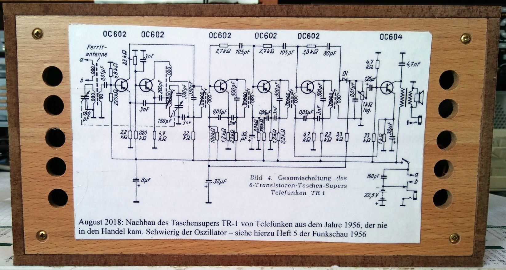 Zu meiner Entschuldigung muss ich sagen, dass mich die Empfangseigenschaften des TR1 wirklich interessiert haben. Man darf nicht vergessen, dass die Transistorentwicklung bei Telefunken und Valvo (OC44, OC45, OC71, OC72) rasant voranschritt und so manche Geräteplanung bei den Herstellern einholte. Während es 1954 nur NF-Transistoren gab (OC601, OC602), kamen bereits 1959 UKW-taugliche Typen OC614 und OC615 in kleinen Stückzahlen auf den Markt. Das Jahr 1958 rief mit Sony auch die japanische Konkurrenz auf den Plan, und der Niedergang der deutschen Unterhaltungsindustrie war eingeleitet.