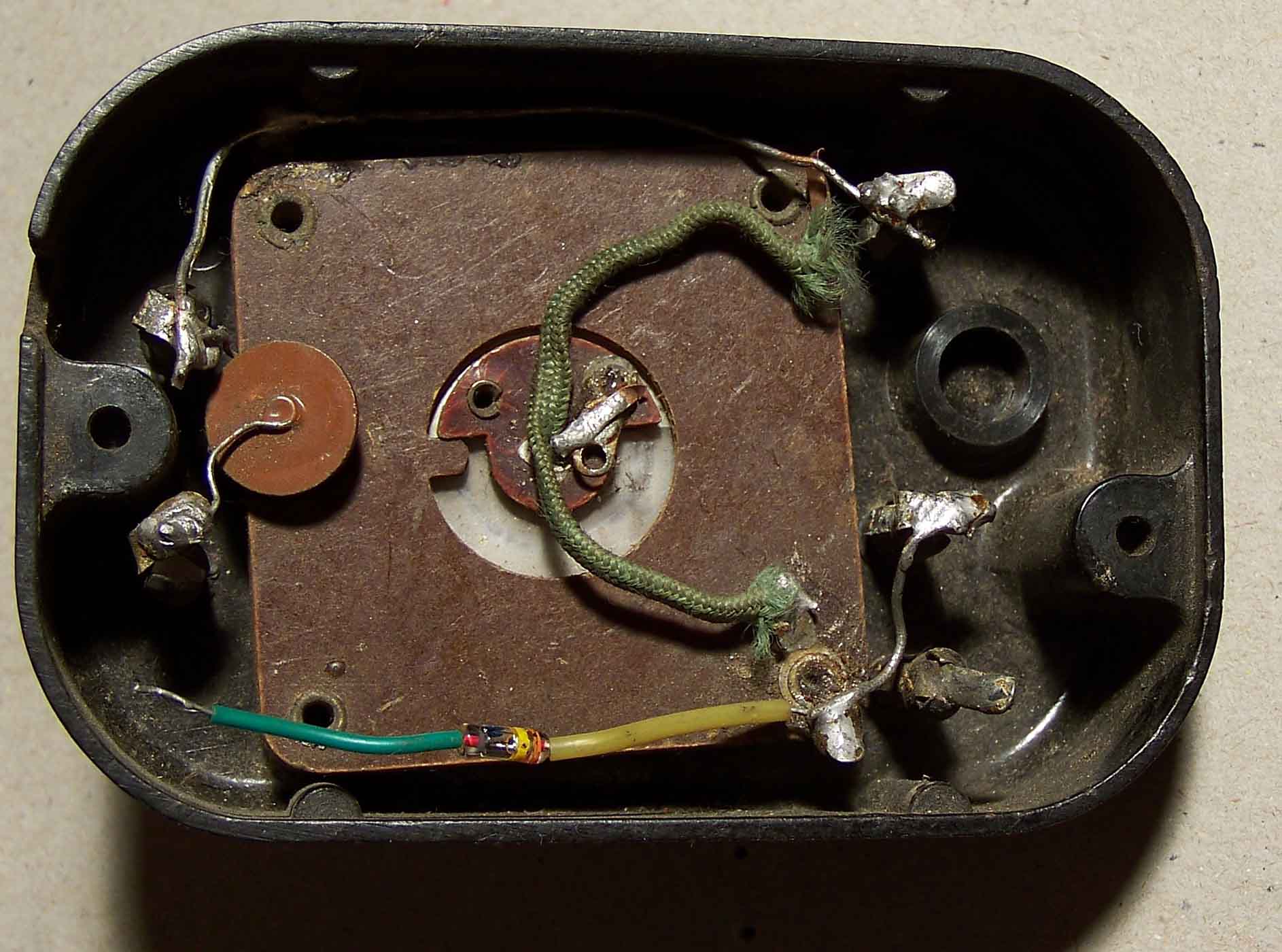 Gestern habe ich den zweiten gereinigt und die zwei nicht originalen Drähte entfernt - dabei ist mir afgefallen , daß das Gehäuse aus Thermoplast ist . Der knopf hat keine Schraube - ist nur draufgedrückt - da er leicht eingerissen ist , ging er leicht runter - Diese Details sind mir auf dem Flohmarkt garnicht aufgefallen.
