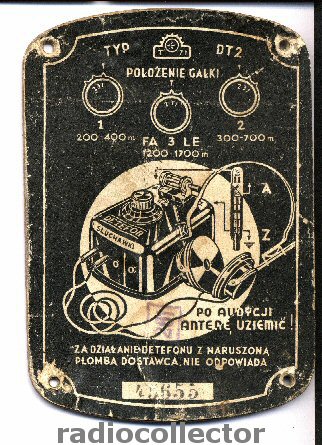 9. Der abgebildete Detektor mit dem Modellnamen "DT2" ist sehr schwer von den anderen beiden Modellen "RDS1" und "RDS2" zu unterscheiden, weil das Bild hierzu nicht viel hergibt und alle drei Modelle äußerlich das gleiche Gehäuse haben. Wenn es das "DT2" ist, hat es 3 Wellenbereiche (200-400 Meter, 300-700 Meter und 1200-1700 Meter). Allerdings wird in der Datenbank das Baujahr 1930 mit zwei ?? und als Hersteller "PWL Panstwowa Wytwornia Lacznosci" angegeben. Diese Firma soll auch nur von 1929 bis 1932 produziert haben,