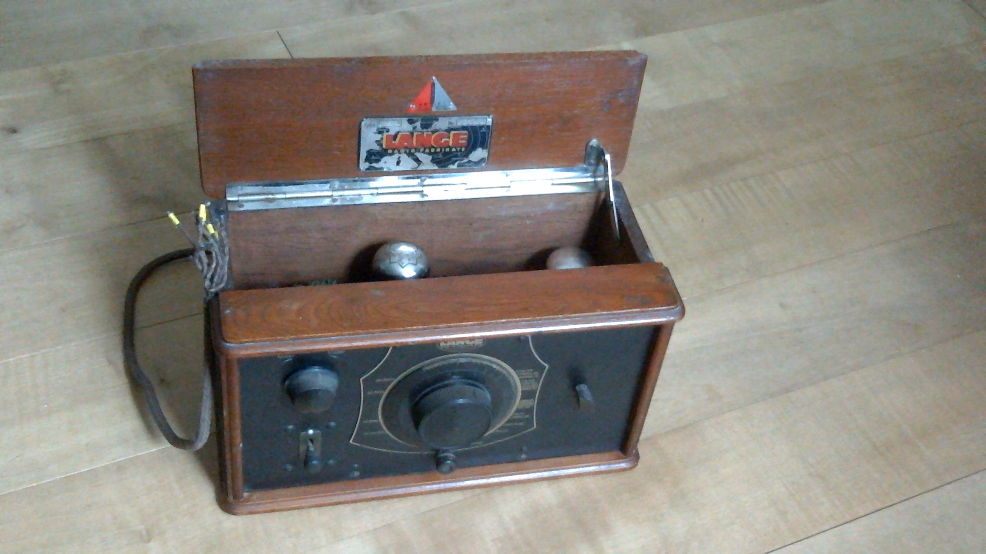 Dein Gerät ist kein Detektor, sondern ein Röhrenradio für Batteriebetrieb von der Firma Lange. Es handelt sich hierbei um ein Audion mit nachgeschalteten NF- Verstärker. Kann es sein, dass bei dem Gerät eine Röhre fehlt? Der Herstellungszeitraum dürfte zwischen 1928/ 1929 liegen, das Modell könnte das Radio "L26 ohne Feinabstimmung" sein. Der Aufkleber im Deckel ist ein Hinweis auf den Hersteller, Firma Lange G.m.b.H. Johannes Plauen im Vogtland
