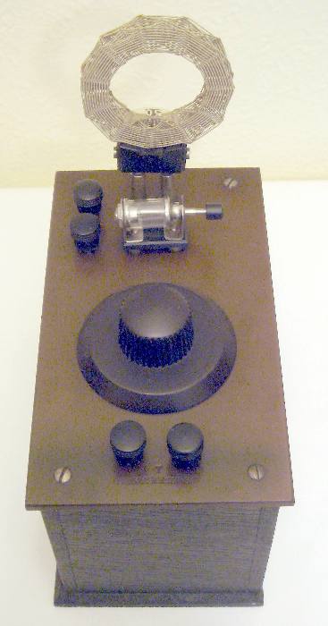 2. Radiola, Modell "Unknown" ca. 1928 Holzgehäuse und Hebel-für Lautstärke (laut, leise) -Luftdrehkondensator und Aufsteckdetektor-