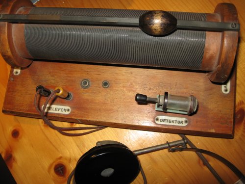 wie mir scheint, kann man die Frage zumindest in Bezug auf den passenden Kopfhörer anhand von Bild 2 mit etwas Glück als geklärt betrachten. Das dort abgebildete Modell ist typisch in seinem Design für die Zeit des Detektor-Empfängers.