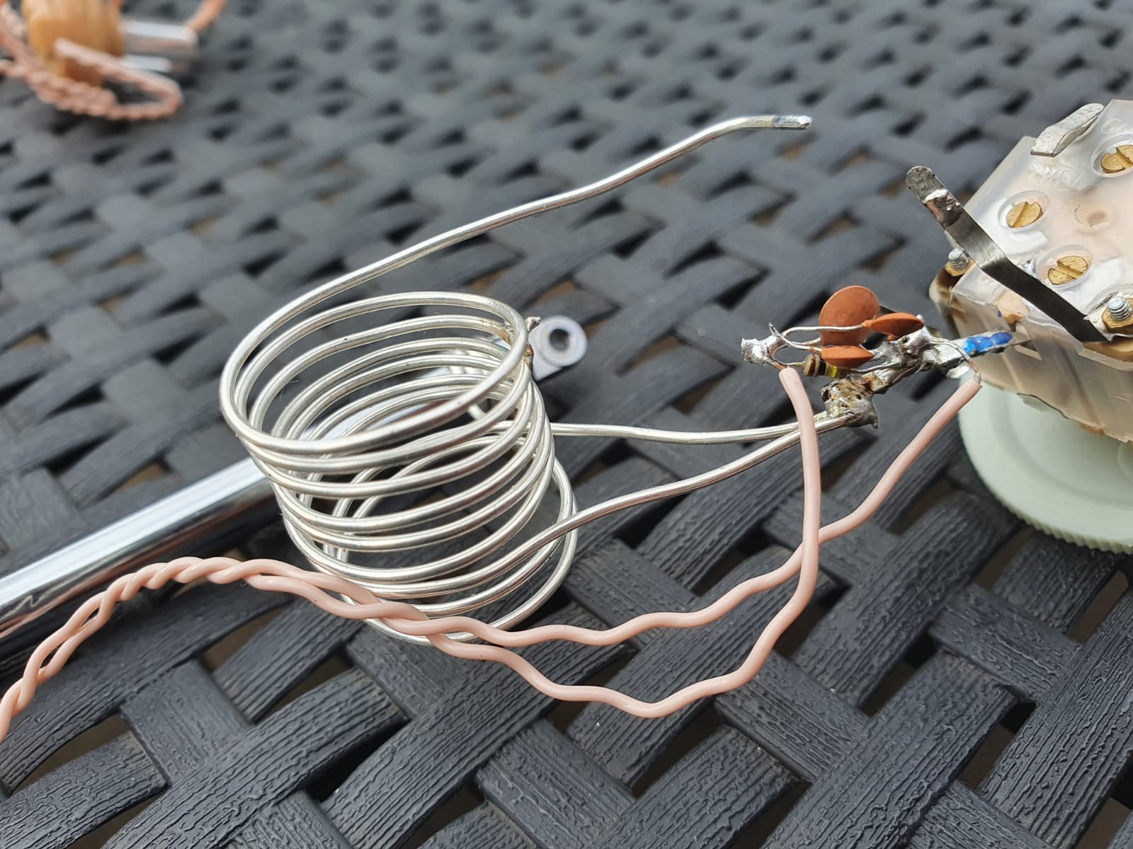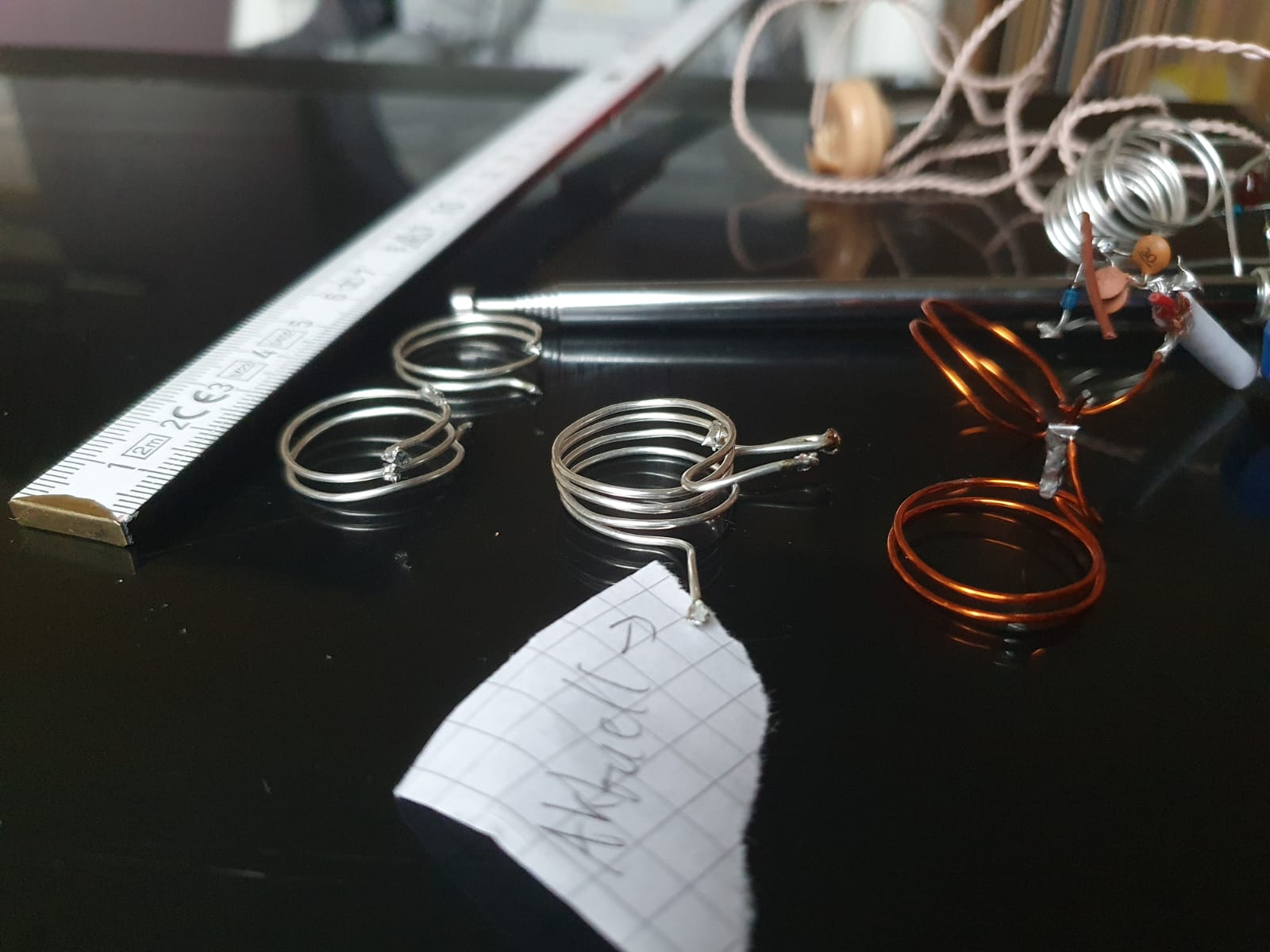 Was meinst du mit zu fest gekoppelt? Die große Antennenspule 2 Windungen etwas zur Seite schieben wie bei dir? Und haben die 4 Windungen um die Teleskopantenne eine Bewandnis oder ist das nur der Stabilität der Verbindung geschuldet?