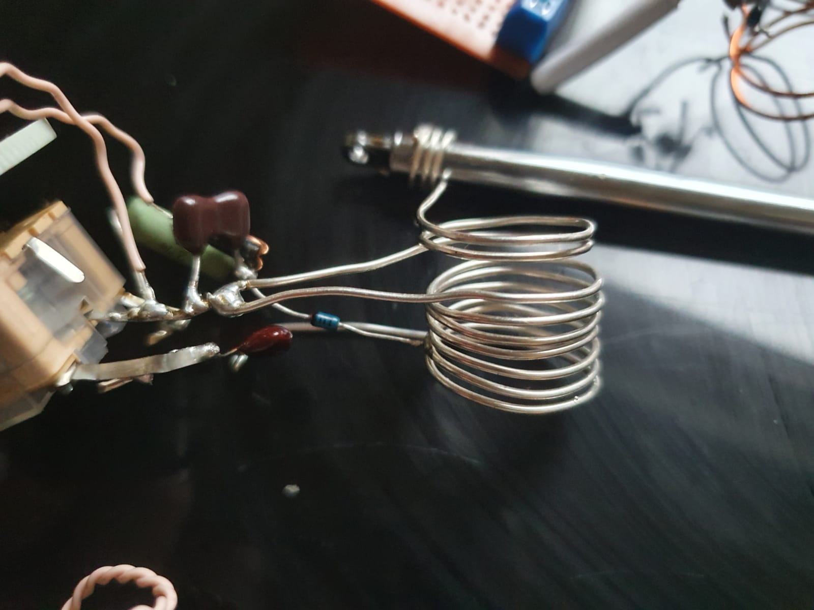Welchen Durchmesser hat deine Spule außen? Hast du 1,5mm oder etwas anderes im Drahtdurchmesser genommen? Und welchen Abstand hast du zwischen den Windungen der großen Spule, der kleinen und zwischen beiden Spulen?