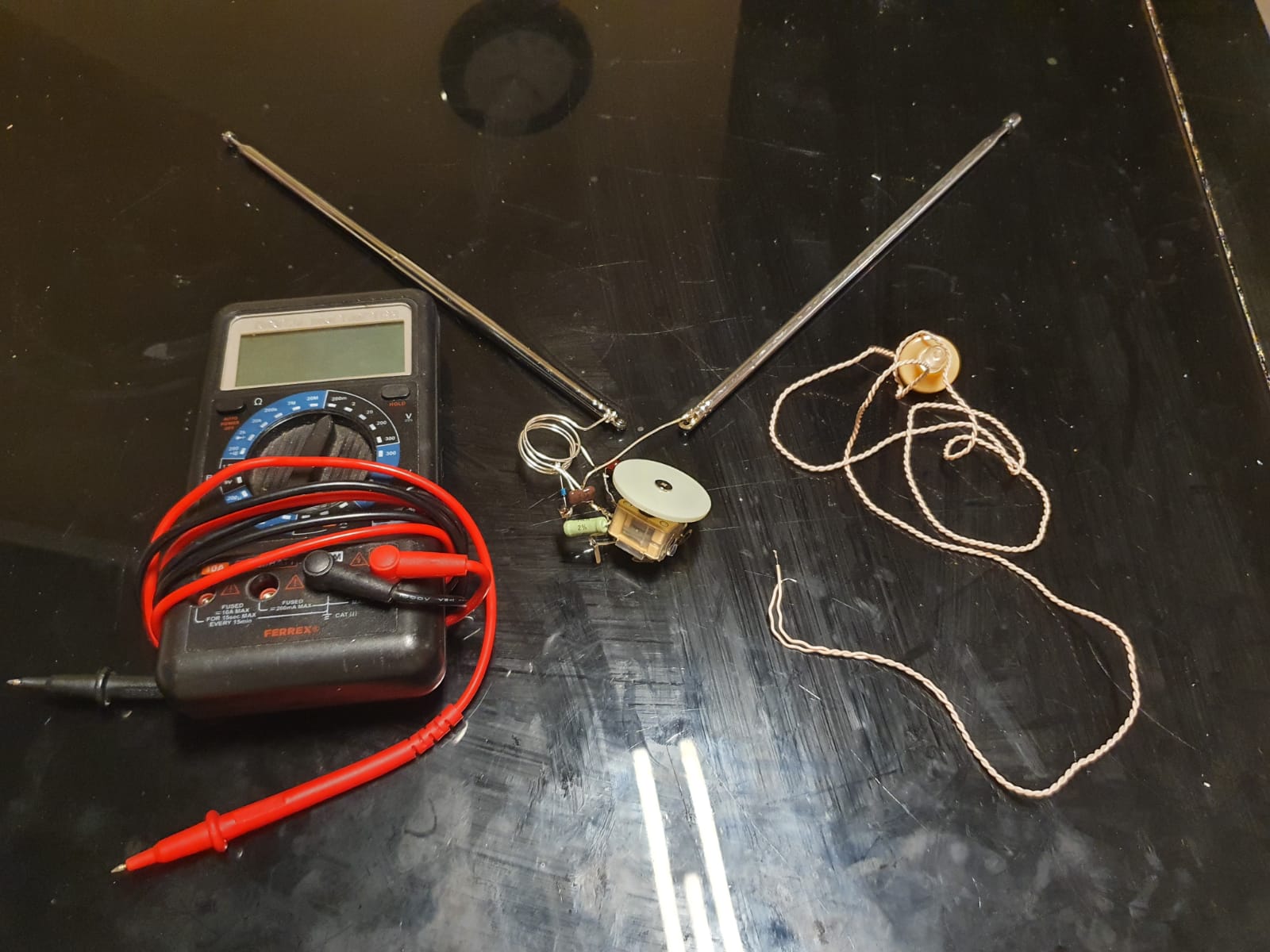 Am Anfang hatte ich mir 4k Kopfhörer geholt, hab die Kabel erneuert und an den MW Detektor angeschlossen. Dann lese ich in der Wumpus Anleitung, nee lieber Kristallkopfhörer. Die wäre lauter. Die Kristallkopfhörer habe ich vor 1 Woche bestellt. Ob sie wertvoll sind oder Nachbauquatsch kann ich aber nicht beurteilen. Jedenfalls hatte ich mit KW und einer Murksspule mit der ich eigentlich MW 1215Khz erreichen wollte dann um 5900KHz und hatte leise einen chinesischen Sender drin. Kein Kondensator, nur Spule, Widerstand und Kristallkopfhörer. Also nehme ich an sie gehen.