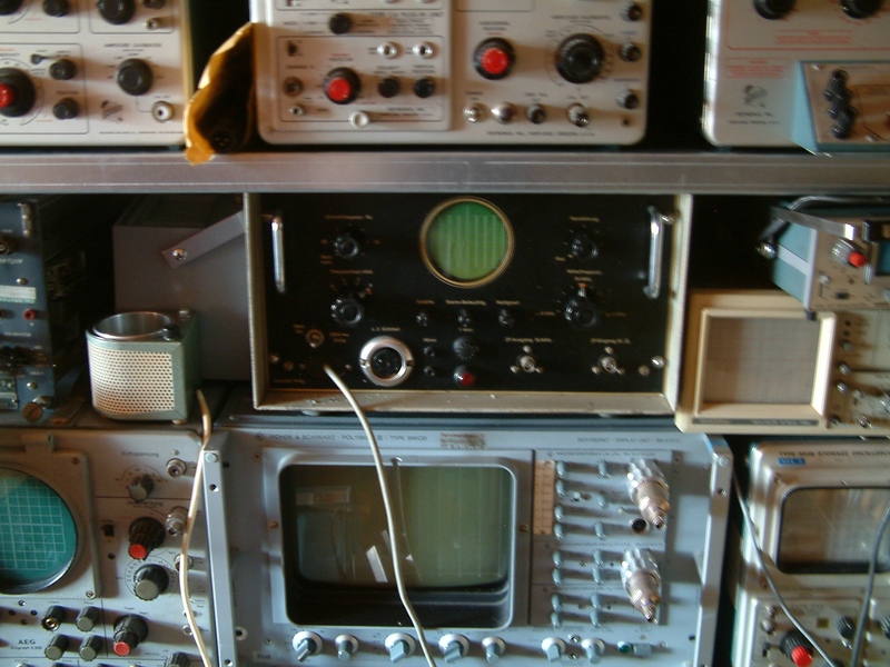 Das Bild habe ich mal wo aus dem Netz gefischt, ist kein Gerät von mir. Das Gerät hat ein offensichtlich nachgerüstetes Poti oben neben der Bildröhre. Dieses Poti dient der Einstellung der Strahlablenkgeschwindigkeit. Keines meiner Geräte hat dieses Poti, die Umbauten wurden vermutlich in den Endsiebzigern durchgeführt, diese Geräte haben dann meist "Post77" Aufkleber. Die technischen Details zu diesem Umbau ist z.B. eine meiner vielen Fragen zu den Gerätevarianten...... Obwohl ich viele Unterlagen zu den Geräten habe, geben diese zu den Umbauten nichts her. Falls jemand noch irgendwelche Unterlagen von dem Gerätesystem hat bitte alles anbieten!! Und falls jemand etwas braucht - mich fragen, helfe gerne!
