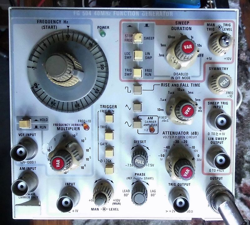 Ich konnte diesen Generator günstig erwerben. Die Spec's sehen ja ganz toll aus! Zur Stromversorgung ist ein Power Module der TM500 Familie erforderlich, welches ich nicht besitze. Aber keine Not, die gewünschten Spannungen kann ich mir selber zusammenfrickeln. Dem Amatör ist ja nichts zu schwör.....