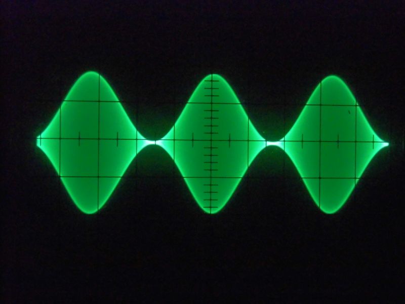 Als Erstes habe ich ein paar Grundfunktionen getestet, die soweit ganz gut funktionieren. Gut gefällt mir die Möglichkeit eine Sinusschwingung (bis zu 40 MHz) bis zu 100% amplitudenmodulieren zu können.