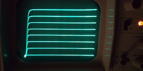 Danach hatte ich Lust auf mehr. Richtig interessant wird die Darstellung der Kennlinienschar für Leistungstransistoren, FETs und nach Möglichkeit auch von Elektronenröhren. Alles sollte auch noch ohne Mikrocontroller auskommen, da ja meistens schon ein Zweikanal-Oszilloskop vorhanden ist. Viele besitzen bereits ein digitales Oszi, was die Ablesung erleichtert.