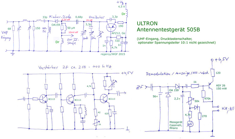 Es könnte die Information auch allein aus einer Händleranzeige stammen, die irgendwo in der Funkschau gestanden hat. Dann würden auch keine Schaltungsdetails drin stehen. Jedenfalls führt diese Spur erstmal ins Nichts. Bleibt also mit den Messungen weiter zu machen und die Schaltung weiter auszulesen.