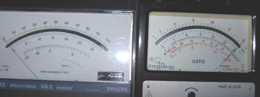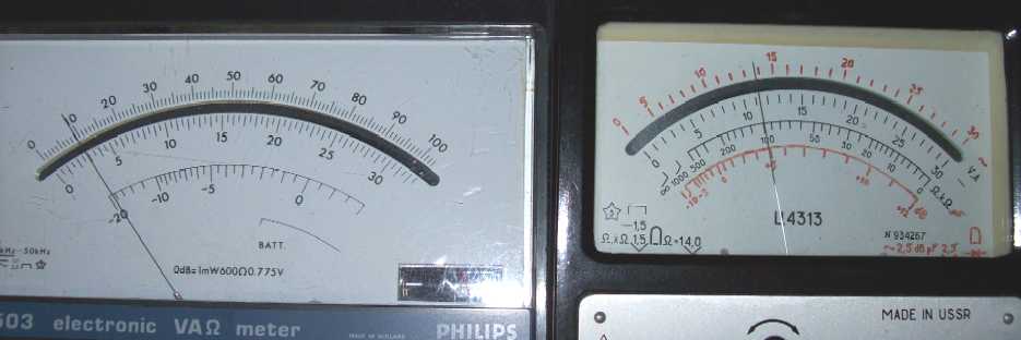 Die Philips-Dinger haben dagegen eine lineare Widerstandsanzeige. Das ist ein großer Vorteil gegenüber den unlinearen Skalen einfacher Multimeter.