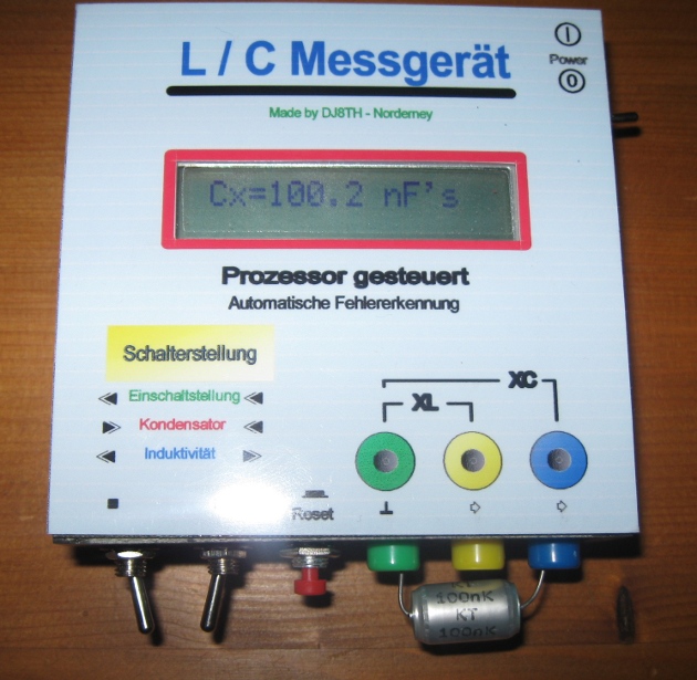 Bisherige Meinungen bestätigen, dass Messtechnik und Zweckmäßigkeit in der Anwendung zusammengehören. Neben meinen Analogis VFM3, Z4313 und UNI 11E, hatte ich mir auch ein LCR 100 mit falschen Erwartungen zugelegt. Das versprach neben der Messung größerer Widerstände auch die Messung der Kapazität und Induktivität. Leider sind die L- und C-Messbereiche in Hinsicht für HF-Anwendungen auf Messgenauigkeit zu grob, extrem ungenau bzw. nicht geeignet. Nutze es daher vorrangig für Widerstände und größere L-C-Werte. Der Zufall ergab in der Bucht ein Angebot eines L-C Messbausatzes für ca.30 €, dem ich entsprach. Für diesen Bausatz und dessen Prinzip gab es im Netz bereits einige positive Anmerkungen und weitere Schaltpläne.. Damit lassen sich die für mich wichtigen kleineren L- und C-Schwingkreisgrößen relativ genau messen. Die Platine mir dem aufsitzenden LCD-Display habe ich eine durchsichtige Kunstffdose mit Deckel und Henkel eingebaut. Sie entstammt einem 1-Euroshop und enthielt ursprünglich kleine Dübel. Statt der 9V-Batterie, habe ich da ein kleines Netzteil eingebaut und an die Batterieanschlüsse angesteckt. Bei Bedarf kann ich so auch ohne Netz messen. Mit dem "Kästchen" bin ich sehr zufrieden. Das erste Foto (lcmeter.jpg) ist eine mögliche technische Weiterentwicklung, eines anderen Konstrukteurs.