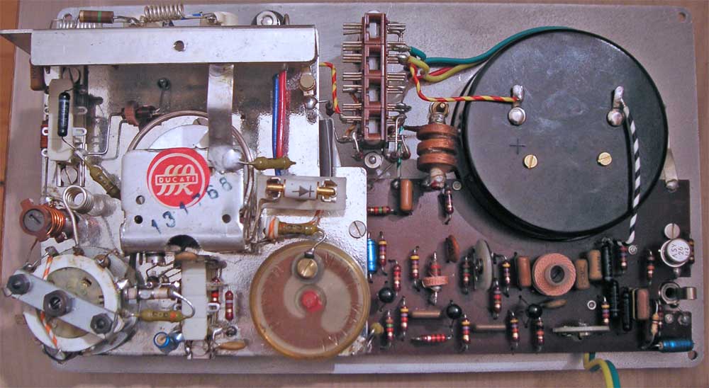 Jetzt habe ich mir die Batterieanzeige angeschaut, wieso funktioniert die? Bei genauem hinsehen ist es auf der Platine zu erkennen: der reguläre spezielle Widerstand (107 kOhm), der zur Batteriespannung führt, wurde nachträglich mit einen 4,7 kOhm huckepack parallel verlötet. Ist das die Erklärung? Ohne diesen müsste allerdings das Messwerk bei einigen Mikroampere Vollausschlag haben. Der italienische Hersteller Cassinelli hatte zwar solche empfindlichen Geräte für Messzwecke, aber ist das hier ein solches feines Stück?