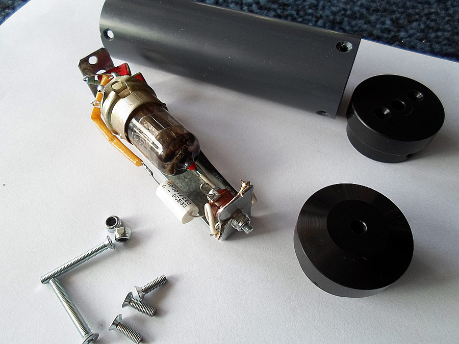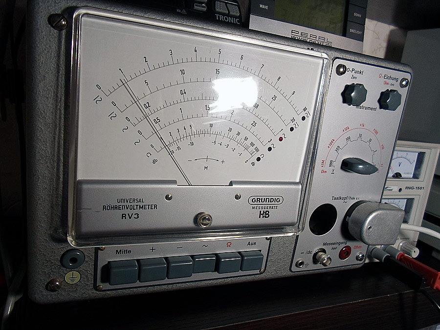 Ich habe von ein paar Jahren, bei Gelegenheit, ein Röhrenvoltmeter Grundig RV3 gekauft, aber ohne Tastkopf. Bei Reparaturen von Röhrentechnik habe ich immer Bedarf auf ein Messgerät der in einem Bereich bis 100mHz arbeitet und hat ein grosser Eingangswiderstand. Ein paar mal habe ich versucht so ein Tastkopf bei Ebay zu kaufen, aber die waren immer zu teuer. Und jetzt endlich habe ich ein Tastkopf selbst gebaut. Statt die EAA91 habe ich eine russische Doppeldiode 6H2P genommen. Aus einem Stück Abflussrohr habe ich eine Teil für das Gehäuse ausgeschnitten. Die beide Deckels habe ich auf dem Drehbank gefertigt. Die Rame war von einem Stück Blech gemacht. Dann alles zusammen gelötet und geschraubt - fertig. Und das ding funktioniert. Anschluss an dem Voltmeter habe ich mit eine 8-pin Röhren Sockel realisiert. In Projekt ist noch ein Verteiler. Gleich habe ich noch Eingang für übrige Messungen durch ein BNC ersetzt.